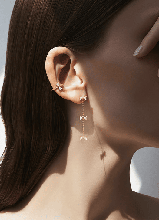 In recent seasons, the ear has become an expressive playground. Boucheron embraces the trend with the mini Quatre Clou de Paris ear cuff in yellow gold. Bold, sculptural, and unmistakably contemporary, it channels the Maison’s iconic Quatre motif launched in 2004.