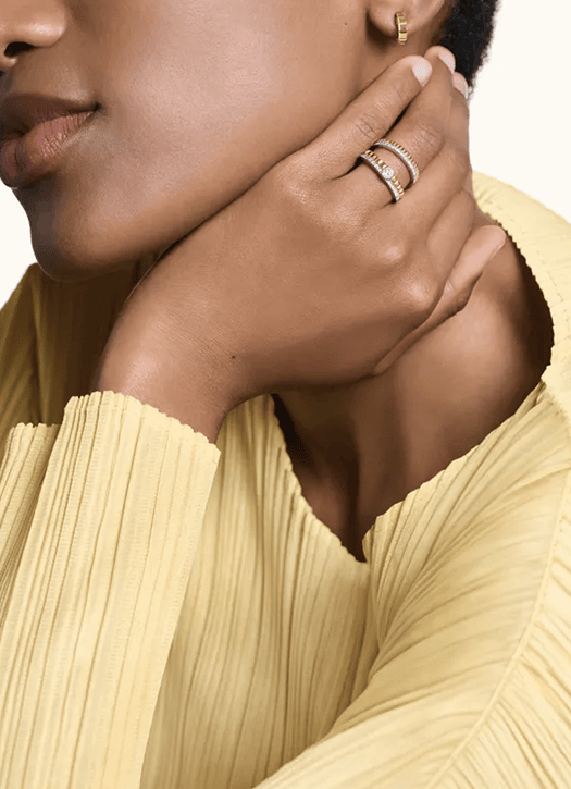 Messika’s iconic Move Uno line comes in a yellow gold diamond-pavé ring just in time for the holidays. At the centre of its graphic silhouette, a brilliant-cut diamond floats freely—an emblematic detail that captures Messika’s playful approach to fine jewellery.