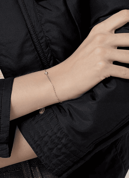 Treasure-hunters, take note: Cartier’s website is a gold mine for exclusive pieces. Among its gems, the Cartier d’Amour bracelet stands out with its brilliant-cut diamond suspended from an ultra-fine gold chain. A masterclass in pared-back elegance.