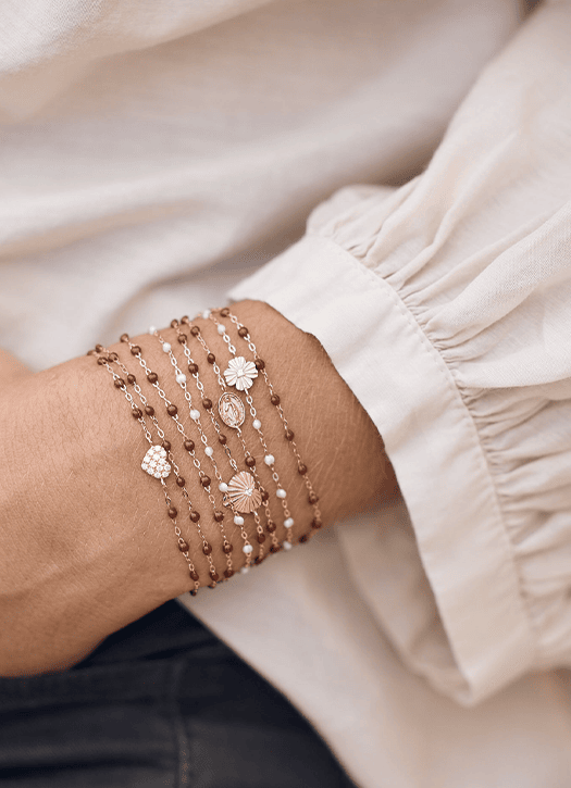 Among the jewels you never take off, the ultimate go-to is the bracelet that works every time. Gigi Clozeau’s 18k gold chain is adorned with colourful resin beads and finished with a personalised charm. For the holiday season, the In Love model features a slightly domed heart set with 13 diamonds.