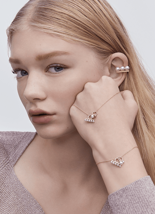 Some will see a wind-swept kite; others, a modern take on the toi et moi design crafted with trillion-cut diamonds. Whatever the interpretation, AHKAH (TASAKI’s sister Maison) enchants with airy, poetic lines.