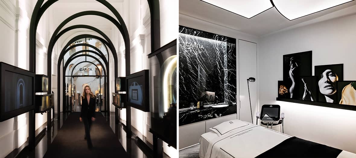 Where: in the luminous Maison Carita, where Philippine Leroy-Beaulieu and Michèle Laroque chat in the latest season of Emily in Paris. A cult Maison adored by celebrities, with a design-forward yet minimalist décor, located just steps from Palais-Royal.