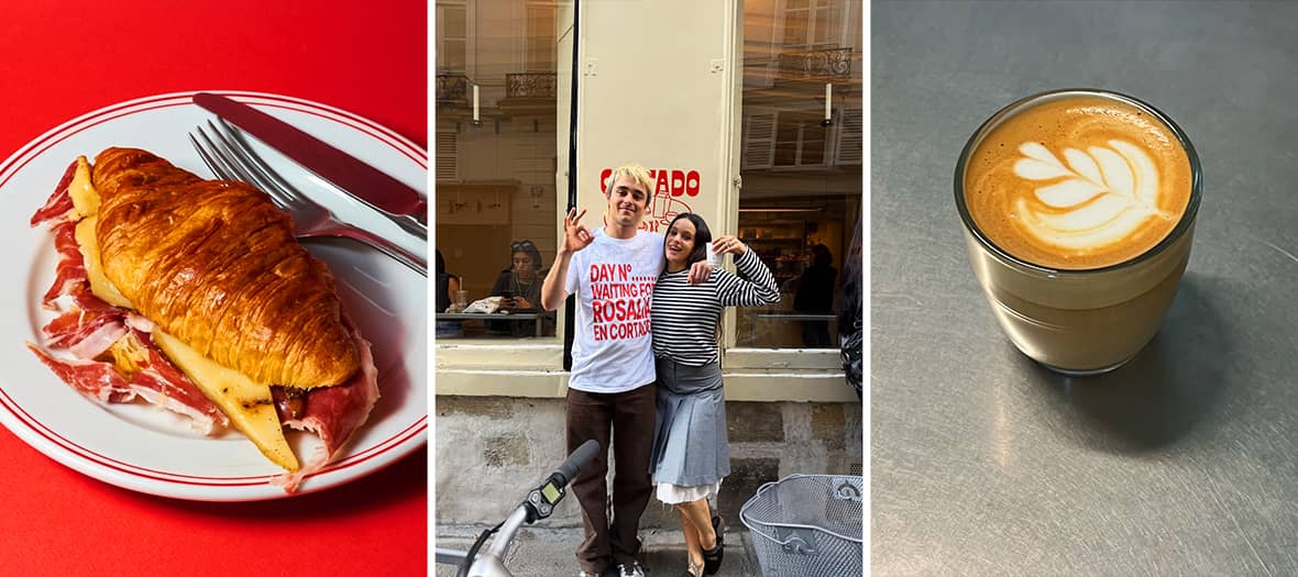 How could you walk along Rue Charlot without stopping at Cortado, aka the café approved by Rosalía ? This Spanish-inspired coffee shop, set in a minimalist and refined space enhanced with red and white decorative details, recalls the vibrant atmosphere of Andalusian ferias. Here you’ll find the classics we all love : matcha latte (€5.50), cappuccino (€5.50), chai latte (€6) and of course the cortado – all perfectly executed. Feeling hungry ? Go for their delicious cositas : the indulgent pan con tomate (€5), their savory croissant, a cheese or Iberian ham sandwich, and many other sun-kissed bites. To end on a sweet note, treat yourself to their pastries, including delicious dark chocolate sea salt cookies or cinnamon cookies (€4.50). The little extra ? For the full Spanish experience, simply walk a few steps to the Cantina to enjoy tortilla, pimientos and other Spanish specialties.