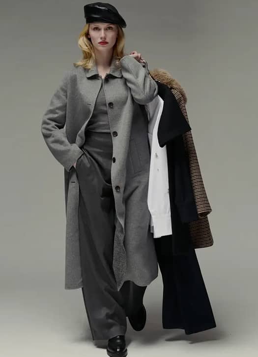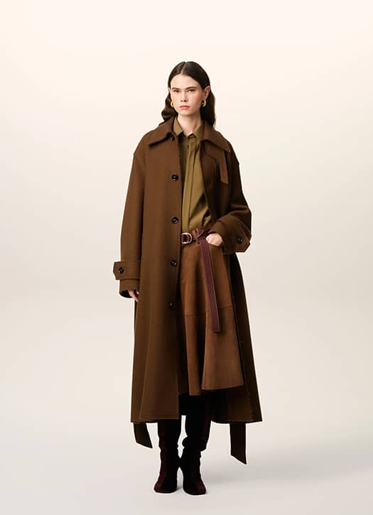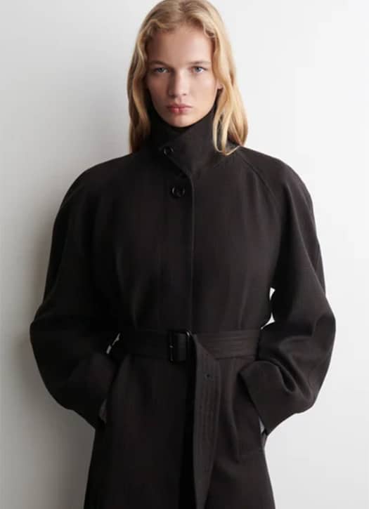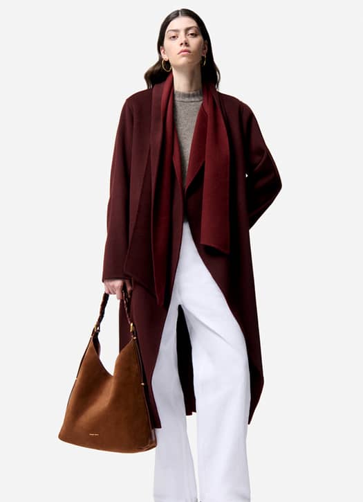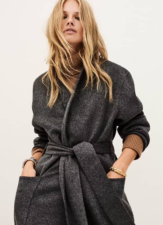 With ba&sh, Parisian bohemian style is a given. If you’re after a long coat that feels light and effortless, the KATE — now 30% off — is a great option. Made from double-faced wool in beige, it features a corded belt with gold eyelets. We picture it with flared trousers, a flowy blouse, and heeled boots.