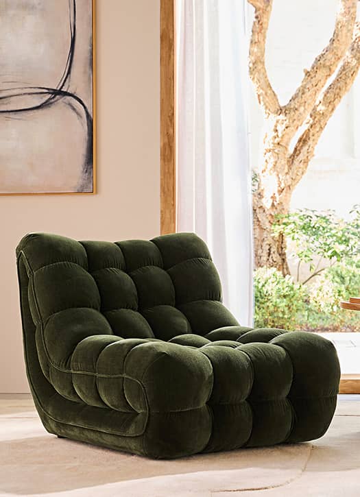 Since the velvet trend shows no signs of slowing down, grab this soft khaki green armchair from AM.PM. It adds just the right amount of color and comfort to any living space.