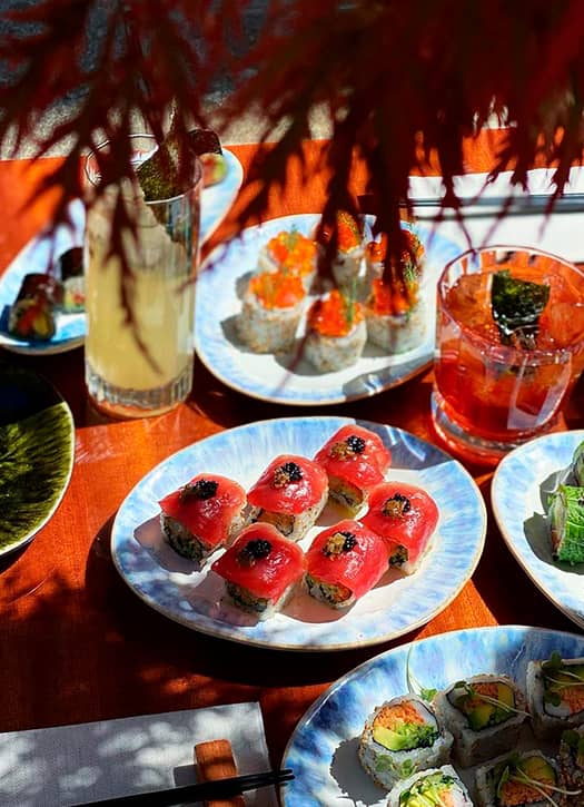 Light Pleasures: Organic buckwheat broth with soba noodles and spinach shoots (€9), "Toro" tuna temaki (€18), green maki with tuna, avocado, arugula, and mint (€24), shiso bomb maki with salmon, avocado, shiso, nori, and yellow radish (€17). The stars of the menu: Gatsby maki with seabass, shrimp, avocado, white tarama, red onions, lemon, and nori (€28). For a treat: non-alcoholic Matcha Lychee cocktail (€12). For the gourmands: one of the delicious homemade mochi in black sesame, matcha, yuzu, or chestnut (€8). Note: for dinner, try the exhilarating Discovery Menu for two, with three courses of isakaya, makis, nigri, and three signature mini desserts (€75 per person).