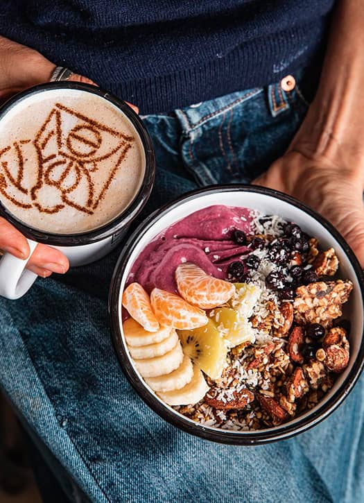 Light Pleasures: The menu star? An açai bowl made with açai cream, banana, crunchy homemade granola, house-made peanut butter, and a mix of seeds (chia, pumpkin, goji berries), topped with your choice of fruit: strawberry, blueberry, mango, or pineapple-coconut. Add optional house-made hazelnut cream (starting at €11). For an all-day brunch vibe, pair it with a well-seasoned toast featuring eggplant caviar, burrata, or guacamole, alongside a smoothie or matcha latte (+€3 for a brunch menu).