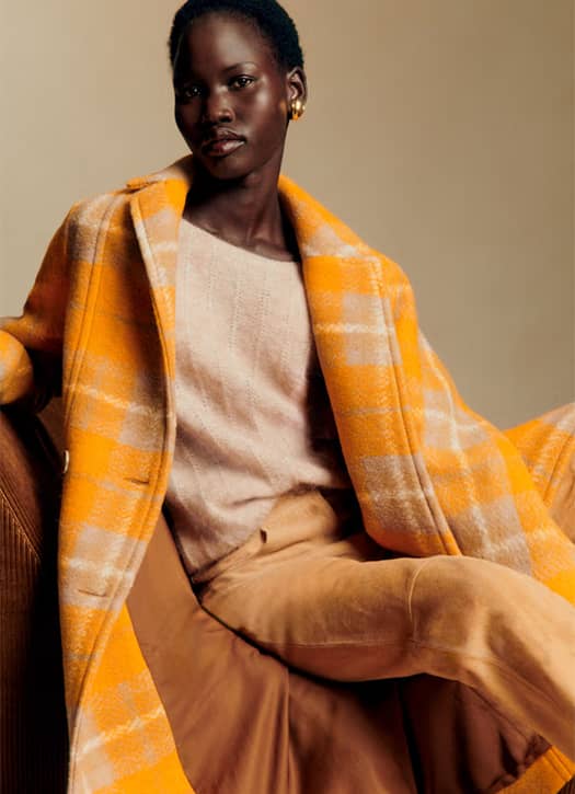A sustainable creation by Sézane with large yellow checks, proving that this color truly pairs with everything in fall. It brightens up raw denim, energizes a cream sweater, and enhances the season’s warm tones. Extra-long, it’s the statement piece of your outfits, the one that captures the light even when the sky turns gray.