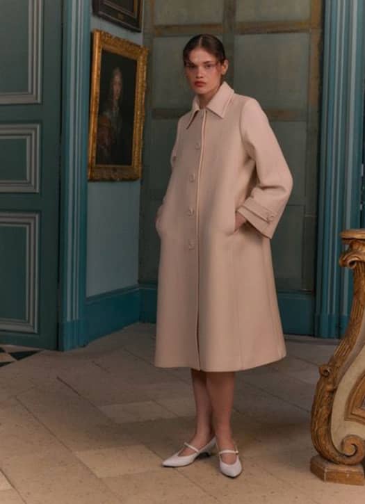 In ecru wool, with a slightly flared straight cut, this long Paul & Joe coat exudes the retro charm of 1960s silhouettes. A Made in France piece we can easily picture with a skirt, knee-high boots, and thick tights, a subtle nod to Jackie Kennedy or Mrs. Maisel.