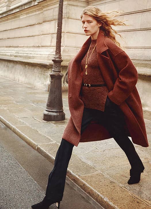 The Flo coat by Vanessa Bruno, oversized and buttoned up to the collar, perfectly embodies the trend that began emerging last year and is now here to stay. In its rich caramel shade, it adds just the right touch of color to our winter silhouettes while keeping that relaxed drape we adore.