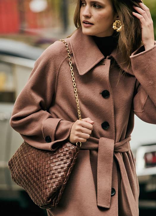 A timeless fall classic, perfected by Petite Mendigote. Its straight cut and tie belt beautifully structure the silhouette without compromising elegance, the kind of coat you bring out every season. What makes it special this year ? Its mocha hue, which pairs wonderfully with a bold green or orange scarf.