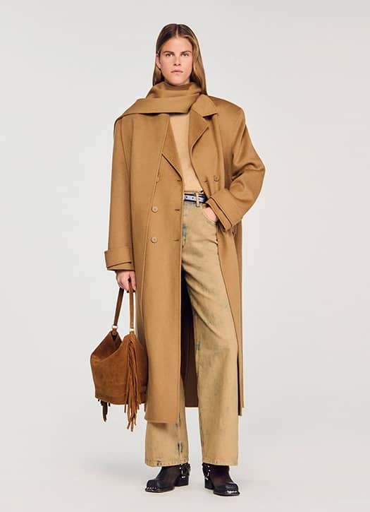 A trend first spotted last year – notably at Courrèges – and now a firm fixture this season: the coat with an integrated scarf. And it’s easy to see why: this two-in-one version ticks all the boxes of chic and practical. At Sandro, it comes in 100% wool, camel color, and oversized cut, blending all our current style obsessions.