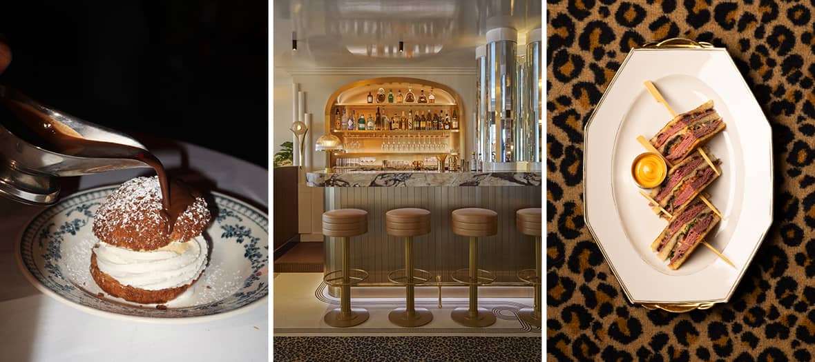 Fitz Group’s trademark? Bringing together the perfect ratio of stylish forty-somethings, the golden youth, and passing VIPs. Its opening night attracted its fair share of stars (Joey Starr and Hafsia Herzi among them), and groups of stylish women are already sharing the scoop. The place has an immediate wow factor, compelling guests to share it on Instagram. With sconces, mirrors, light fixtures, wood paneling, golden velvet, and leopard-print carpets, architect Sophie Lacroix (Dandino, Siena) had free rein to revitalize this forgotten institution with a Gatsby-compatible vibe, clearly inspired by Art Deco. By day, the beauty is enhanced by views of the Bourse through large windows.