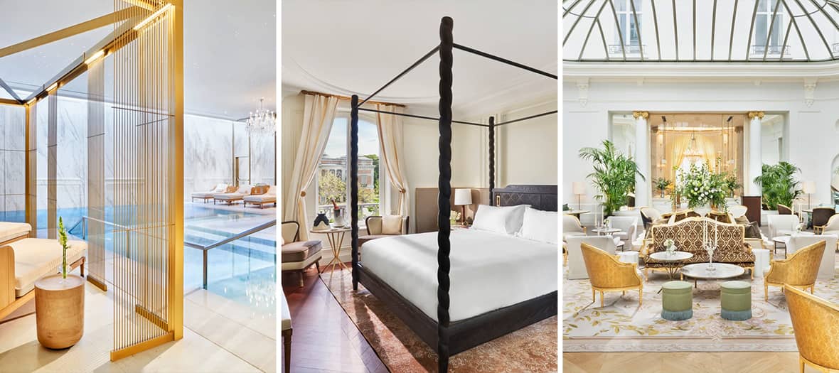 The all-white lobby, illuminated by cascading golden chandeliers, opens onto the glass-roofed Palm Court, the place to see and be seen. The 153 rooms and 53 suites feature herringbone parquet floors and refined neutral tones. A charming detail : pillows embroidered with guests’ initials.