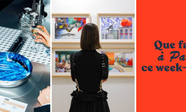 Red bombers, New Look, 29,99€ - Pantalon évasé ‘Galles’, Galeries Lafayette, 59,99€ - Sailor top three colors ‘Amour’, Maison Labiche, 70€ - Red leather loafers ‘Deanne’, Jonak, 95€ - Mini bag in red leather 'Air 8', Lancaster, 59€.