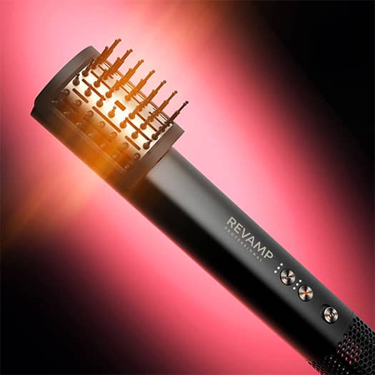 For healthy, shiny hair without sacrificing style, Revamp’s Hydro Shine Air includes: a concentrator for fast drying, an oval brush for volume and smoothing, and a straightening brush for glossy sleekness — all in a travel-friendly pouch. Hydro-ion technology sends water ions deep into the hair to maintain hydration, smooth cuticles, and reduce static. One tool, every style.