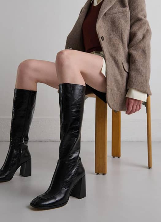Impossible to be more flattering than this height of boots which arrives exactly at knee level and is easier to wear than an over-the-knee boot. A small banger at nice price spotted at H&M, perfect worn with a slit skirt or, for those who dare, a minishort enhanced with beautiful tights… in lace please!