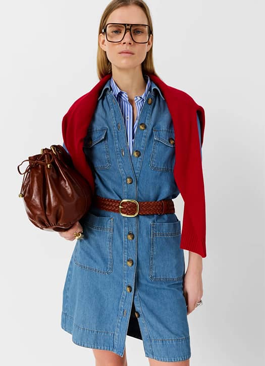Denim is making a strong comeback, and it’s perfect timing because we want to wear it in every form. In its new collection, Gerard Darel imagines a fashionista 2.0 silhouette with a straight buttoned denim dress in a light wash that’s still rarely seen in the office. An ideal mid-season piece, perfect layered over a turtleneck or a shirt while temperatures remain cool.