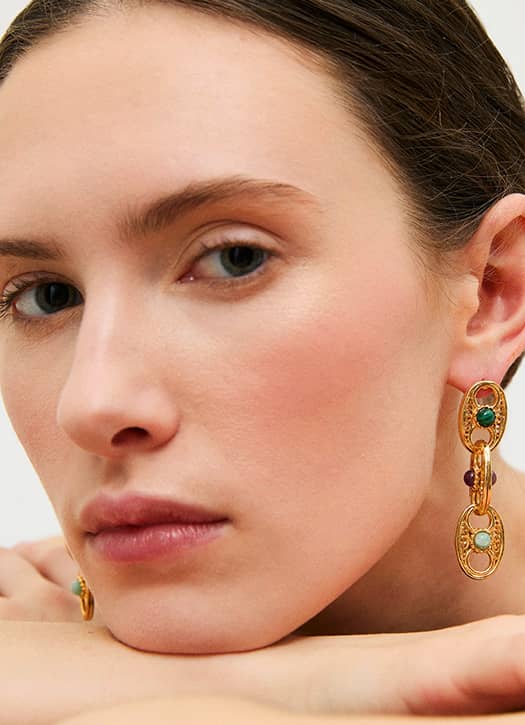Sometimes, it’s all about the details. And when it comes to accessories, Gas Bijoux is the perfect balance to elevate a simple outfit with a chic touch. Here, dangling earrings in gold-plated chain, made of delicate links that catch the eye just enough. Wear with your hair up to let the jewelry shine.
