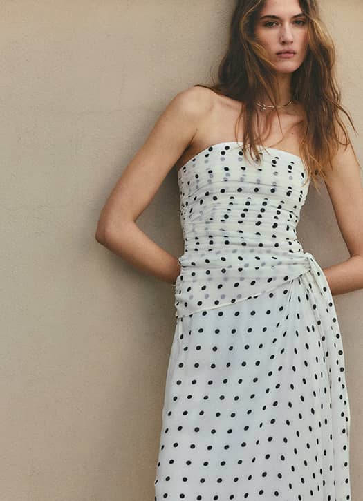 You’ve probably noticed: this year, polka dots are everywhere! This trend straight from the 50s is set to define the summer and wedding season. At Mango, we found the perfect piece: a white bustier tulle dress, sprinkled with subtle dots, with a tube cut that instantly gives a modern princess vibe.