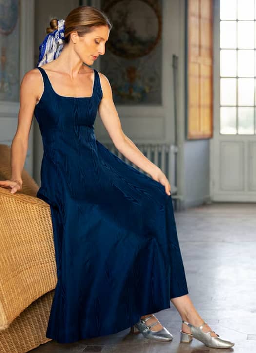 For those who go for understated elegance on the big day, this dress by Le Bon Marché Rive Gauche x Tatiana de Nicolay stands out with its structured silhouette and deep blue color. Trapeze cut, textured fabric, perfect drape… it carries you from the cocktail hour to the dance floor flawlessly. Perfect for a bridesmaid!
