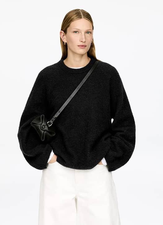 We found the wardrobe essential at Arket : a black wool–alpaca knit, classic but not basic. The detail that changes everything ? Slightly puffed sleeves that elevate the silhouette without overdoing it. The kind of knit you keep for years, and soon pair with balloon trousers for an effortless, never-sloppy look.