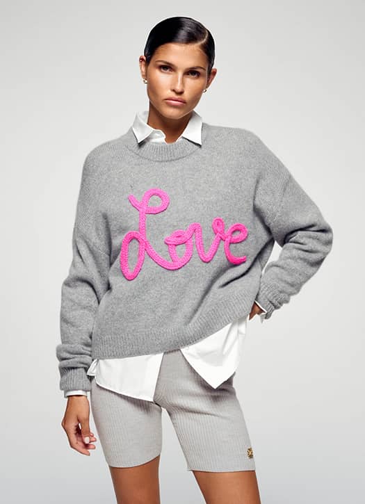 From Future has made cashmere cool and accessible with playful pops of color. Our favorite this season? A grey sweater with a bold pink “Love” motif : warm enough on its own without layering three outfits. Cozy and stylish.