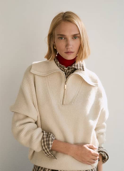 The half-zip sweater: tempting, but sometimes tricky to style. H&M delivers a cream ribbed version we’re already picturing over a checked shirt or a colorful turtleneck : zip open, obviously. Country chic activated.