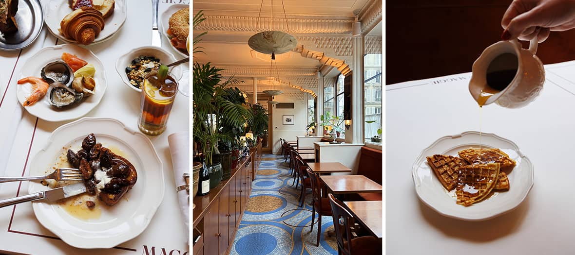 Extra perk : picky eaters can order American brunch classics à la carte : avocado toast (€11), salmon bagel (€11), lobster roll (€20), and more.