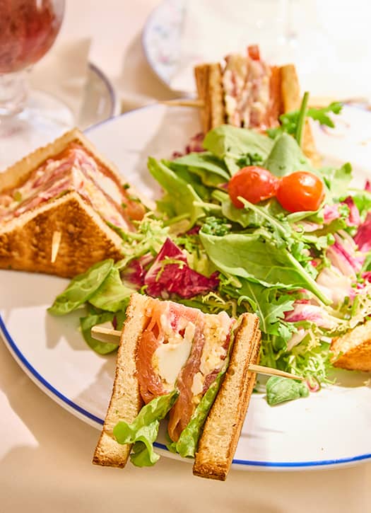 The club sandwich? An institution! Unlike other street food staples, this layered sandwich is pure aristocracy: plated with style, assembled with precision, and skewered like a true culinary work of art. Its natural playground? Parisian tea rooms, luxury hotel bars, and chic institutions of the capital. Here’s our selection of the very best club sandwiches in Paris you’ll want to sink your teeth into…