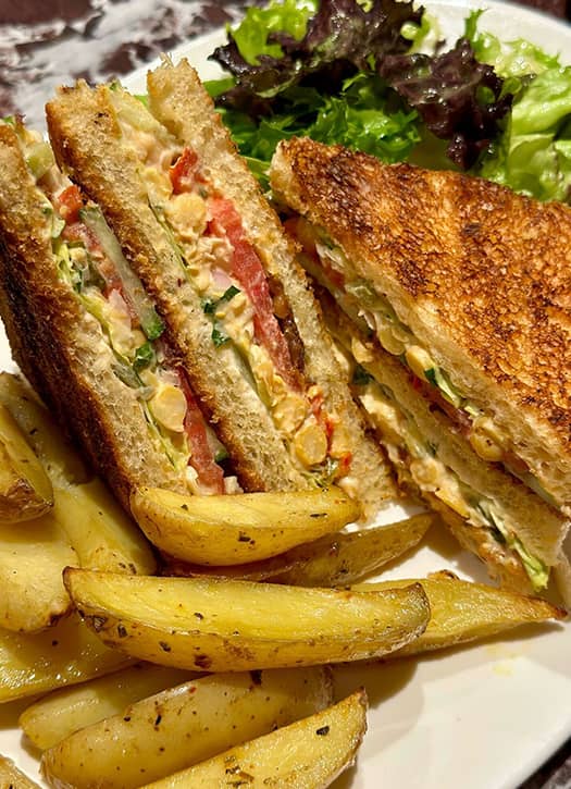 For ten years, Coffee Club has been a Left Bank favorite for its homemade American comfort food. Its Club Sandwich Deluxe is a cheesy masterpiece: seeded bread, mayo, tomato, gooey cheddar, chicken, and bacon, served with fries or hash browns—crispy potato cakes you won’t be able to stop eating.