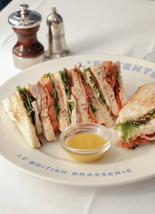 Paris’s authentic British brasserie delivers homemade Anglo-Saxon classics… right down to the ketchup. Oliver Woodhead’s Club de L’Entente is generously filled with roasted turkey and a layer of tangy tartar sauce, with Colman’s mustard on the side to dip the toasted bread.