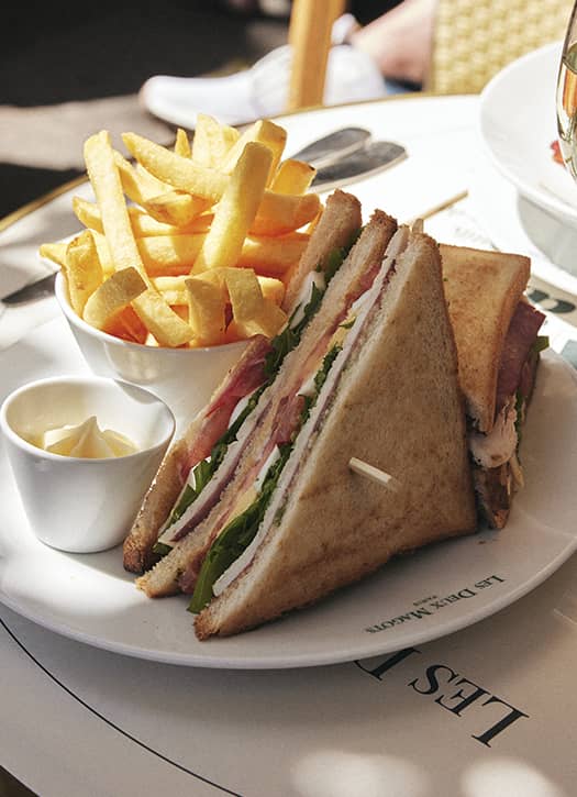 For pure Parisian snobbery, nothing beats settling into Café Antonia at Le Bristol and ordering its famous club sandwich “like a regular.” Made to order with premium ingredients—tender chicken, crispy bacon, fresh lettuce, and juicy tomatoes—it’s perfectly geometric, plated with golden palace-style fries. Also available in a light vegetarian version with herb yogurt.