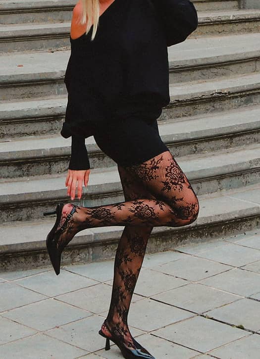 Even though we bring out our prettiest dresses at the end of the year, it’s impossible to ignore the cold temperatures. Hypothermia is never far away, so we opt for stylish tights to complete the outfit. Bonus: we stay warm and end the year looking incredible. Lace tights, seen everywhere this season, remain a favorite and can be found at Calzedonia.