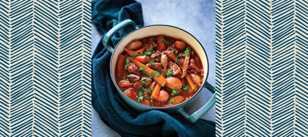 Don't be fooled by appearances… This autumn Burgundy , with carrots and mushrooms, is no longer vegan . The trick that changes everything? The jackfruit to replace meat.