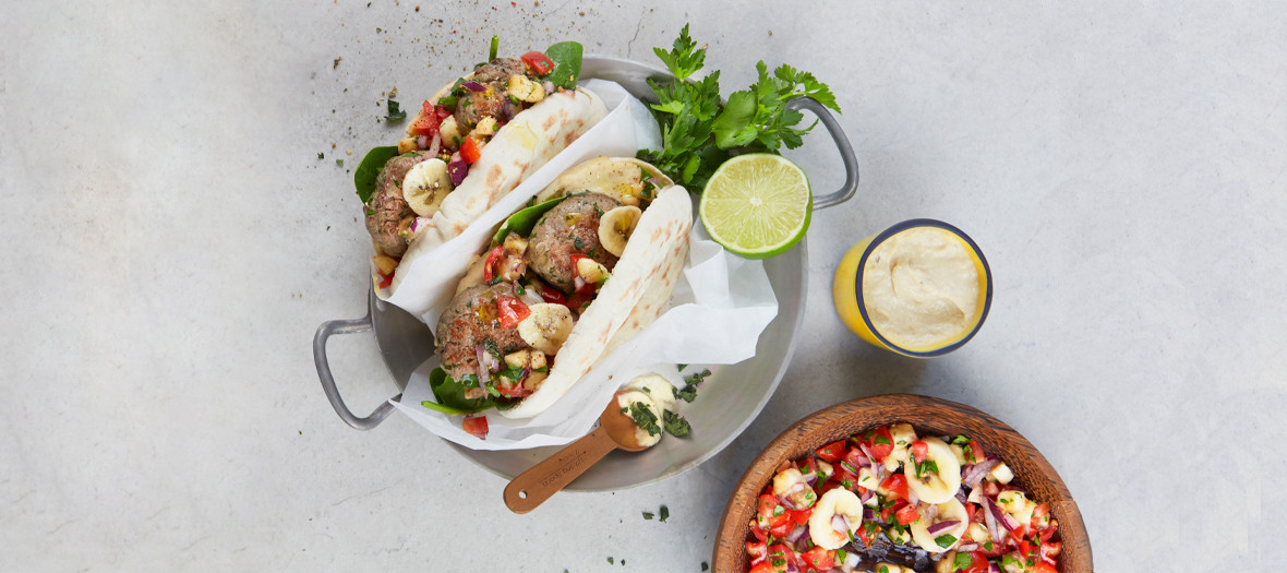 Do you have a passion for filled pita breads like at Ace du Fallafel or at Miznon ? That's good, here is the recipe to concoct an exquisite sandwich. The extra thing that makes all the difference? The banana hummus that gives the magical taste that everyone will enjoy.