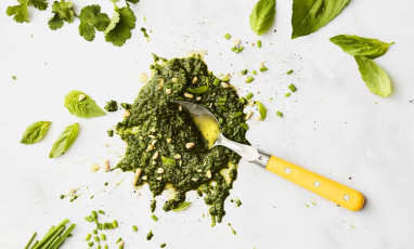 The day before, blend half of the basil with olive oil and 150 g of citron juice until smooth. Refrigerate the sauce.