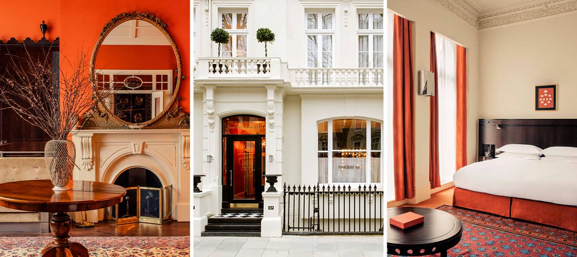 This 4-star London hotel has the added bonus of introducing guests to a lesser-known neighborhood : Paddington. Yes, it’s not just the name of the beloved bear, it’s also an elegant yet lively district north of Hyde Park, known for its Victorian townhouses and eclectic boutiques. The Bellevue is the first international property from the French group Lignée Hôtels & Domaine, which includes Domaine de la Soucherie in Anjou, Maison Favart and Narcisse Blanc in Paris, and Yndō in Bordeaux. Across the common areas and 60 rooms, designer Fabrizio Casiraghi plays with contrasts, blending 19th-century charm with contemporary flair, enhanced by exotic touches such as the striking tapestry by Emily Bode crowning the walls of the Pondicherry bar. Upon arrival, guests are charmed by the orange-and-black reception lounge, where shelves display vintage-style jars filled with… sweets. Rooms feature warm palettes: terracotta curtains and natural-toned walls. Sizes range from cleverly designed 10 m² “cabin” rooms – with elevated beds allowing luggage storage underneath – to the 35 m² Grand Norfolk Suite, complete with king-size bed, sofa bed, period moldings and large windows overlooking the garden. There’s no restaurant, but the cocktail list at the bar is excellent, and the breakfast room is cosy with velvet banquettes.