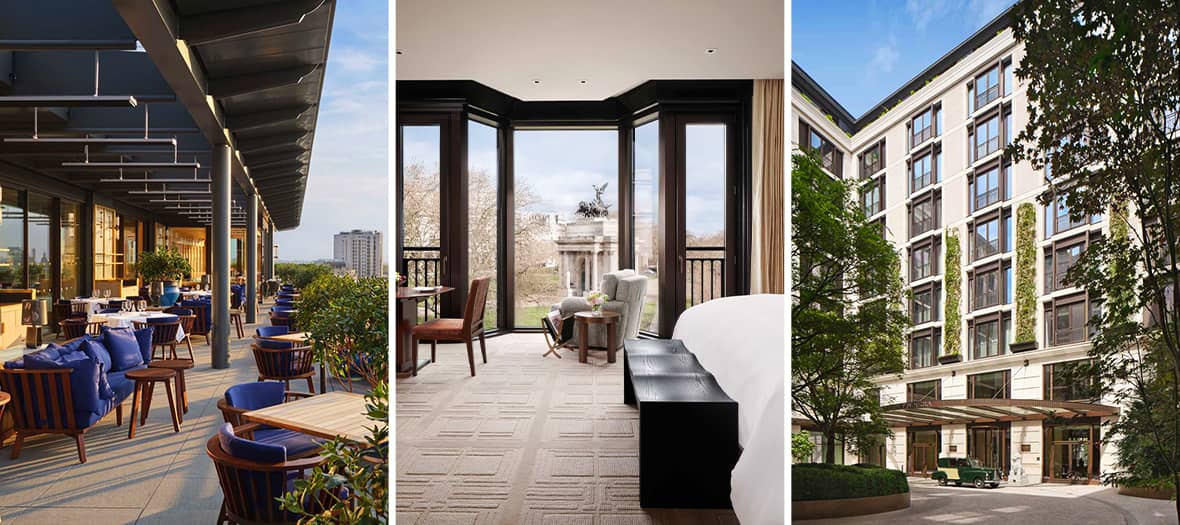 The first UK property from the Hong Kong–based group, opened in September 2023, enjoys a prime location overlooking Hyde Park Corner and Wellington Arch. Although brand new, this prestigious 5-star hotel blends seamlessly with the surrounding listed buildings. Tradition prevails : guests are welcomed by staff wearing the signature Peninsula white uniforms. The vast lobby, opening on one side to Hyde Park Corner and on the other to an inner courtyard, is the go-to spot for breakfast and afternoon tea, enjoyed to the sound of live piano music. Across its 190 rooms and suites – most featuring floor-to-ceiling windows – Peter Marino’s décor exudes classic elegance. A thoughtful touch: bathrooms with spa-function bathtubs.