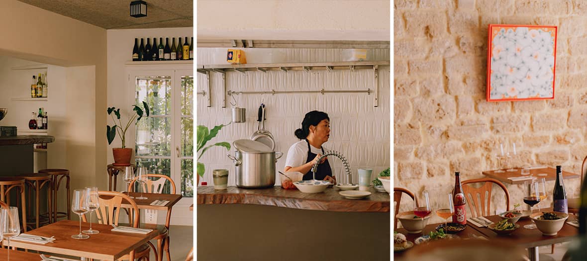 At the helm of the open kitchen is Korean chef Ji-Hye Park, known for her restaurant OMA (= “mom” in Korean). Her mission ? To create delicious dishes that elevate the natural wines and sakes on the menu. She crafts comforting, generous plates with subtle Korean influences, evolving with the seasons. Current highlights include marinated line-caught mackerel (€17), baked eggs with Parmesan (€11), and homemade foie gras (€18). Then come the heartier dishes, such as a rich cauliflower steak gratinated with Comté (€21) or a comforting pot-au-feu (€27). Our absolute favorite ? The iconic OMA rice – a true hug in a bowl – mixed with slow-cooked beef, a soft-boiled egg, and toasted nori sheets (€22). Stir well before tasting for pure comfort food bliss. To finish on a sweet note, the brie with trumpet mushrooms and gochujang (€12) and the chocolate ganache (€8) are musts.