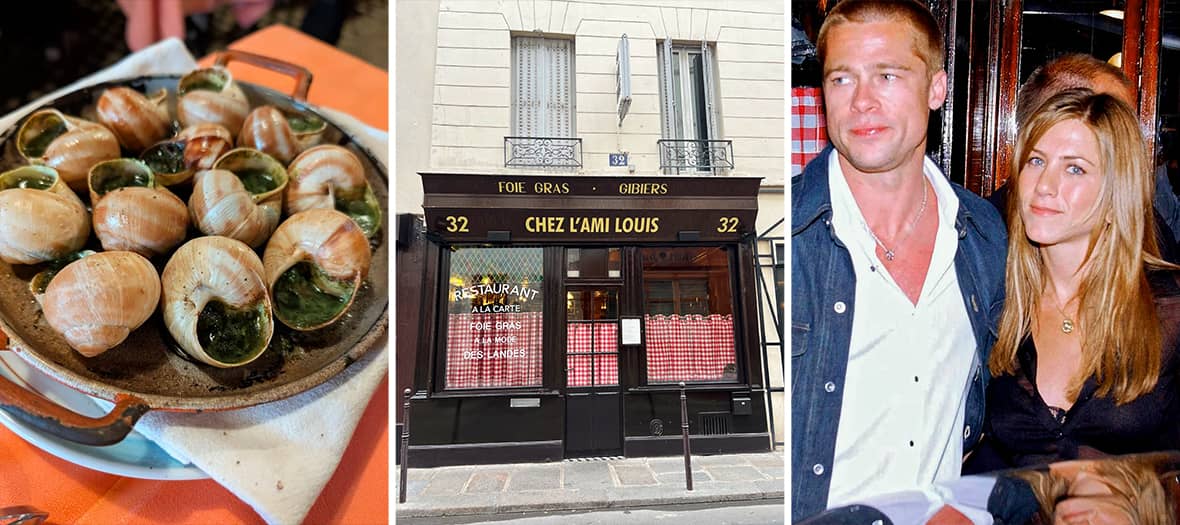 Fraîchement rachetée par LVMH, cette adresse particulièrement cotée fait figure d’institution. Dans ce bistrot, resté depuis un siècle dans son jus avec bois sombre et nappes à carreaux rouges, se pressent les stars du monde entier et autres personnalités politiques incognito. Pas de site Internet, réservations uniquement par téléphone, zéro communication : la réputation people de L’Ami Louis se suffit à elle-même. On y commande les cultissimes escargots de Bourgogne (52 € la douzaine), un foie gras des Landes (72 €), un poulet rôti pour deux personnes (125 €), un confit de canard (68 €) ou encore un baba au rhum (48 €), des agapes cocorico qui se posent comme de véritables curiosités pour la clientèle étrangère…