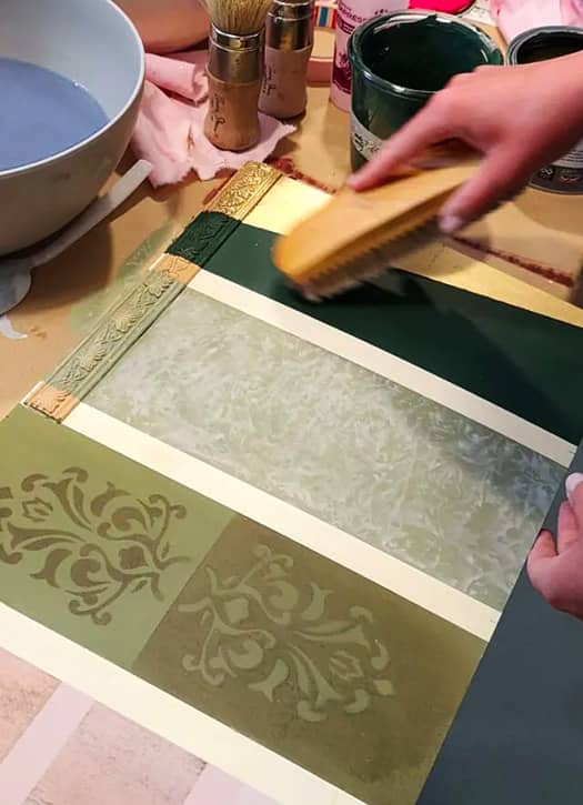 En plein Montmartre, on se familiarise avec les techniques de patines décoratives : pochoir à la cire, création d’une patine ancienne et application d’un transfert sur feuille d’or, application de motifs au tampon… Sophie vous guide pas à pas pour redonner vie à cette commode qui a bien besoin d’un coup de neuf !