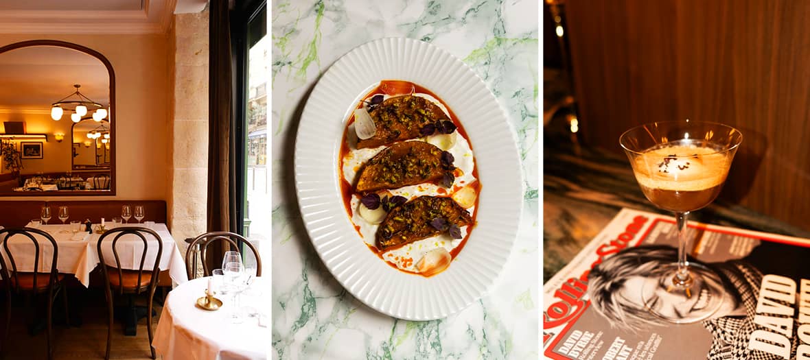 Mention spéciale pour les mignons desserts (affogato 8 € et la starlette de cake au citron, mascarpone et basilic, 12 €) pour accompagner un cocktail Paloma au pamplemousse ou un Espresso Martini de rigueur (16 €). Notre jeu préféré alors ? Observer les gens se déplacer de table en table pour saluer leurs targets qui, comme par hasard, se retrouvent le même soir au même endroit…