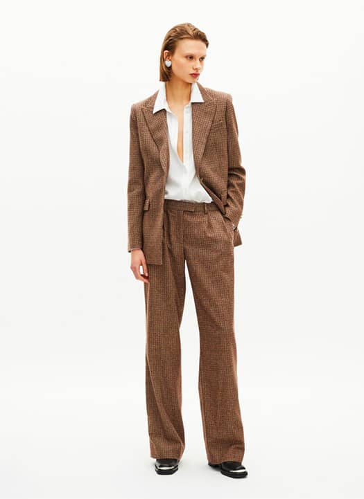On pense souvent qu’un blazer doit jouer le minimalisme pour rester élégant… Faux. Ce modèle pied-de-poule signé The Kooples prouve le contraire : coupe droite, allure couture, il assume ce petit je-ne-sais-quoi qui transforme une silhouette. Porté sur une chemise blanche impeccablement boutonnée, on le croirait tout droit sorti d’un défilé de haute couture.