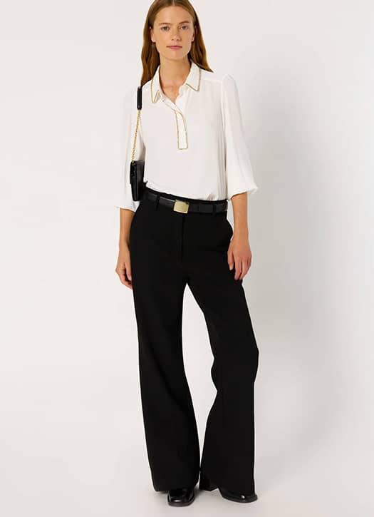 Les réductions, c’est aussi l’occasion de s’offrir de vrais beaux basiques, ceux qui durent et sauvent n’importe quel look en conférant une allure chic à souhait. Gérard Darel maîtrise le sujet à la perfection. On a flashé sur ce pantalon évasé en jersey, presque à moitié prix : il passe du mode réunion au mode soirée sans même demander la permission. Bref, le genre d’investissement intelligent qu’on adore.