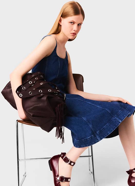Le Miss M de Maje, nouveau classique du vestiaire, s’affiche enfin à prix adouci. Sa silhouette XL, son cuir bordeaux intense et son porté tout-terrain en font le compagnon idéal du quotidien, du bureau au dîner. On l’imagine parfaitement customisé avec la tendance clip-on charms du moment : l’accessoire qui upgrade un look en deux secondes.