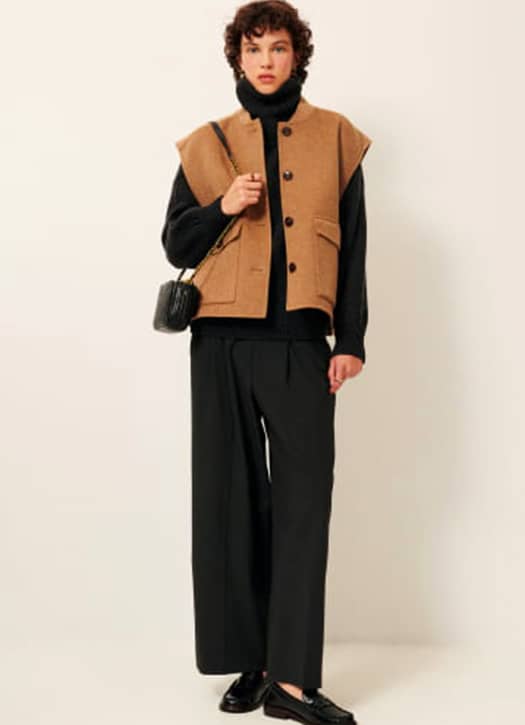 Si vous flânez dans le Marais, impossible de passer à côté : la veste sans manche est devenue l’uniforme de la Parisienne fashion. On pense grosse maille cosy, pantalon un peu large, silhouette minimaliste… et enfin on ajoute cette pièce pour finir le look. Chez Sessùn, on a repéré ce modèle en laine, oversize juste comme il faut, qui apporte une allure pointue à toutes nos prochaines tenues d’automne-hiver.