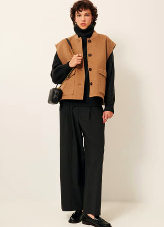 Si vous flânez dans le Marais, impossible de passer à côté : la veste sans manche est devenue l’uniforme de la Parisienne fashion. On pense grosse maille cosy, pantalon un peu large, silhouette minimaliste… et enfin on ajoute cette pièce pour finir le look. Chez Sessùn, on a repéré ce modèle en laine, oversize juste comme il faut, qui apporte une allure pointue à toutes nos prochaines tenues d’automne-hiver.