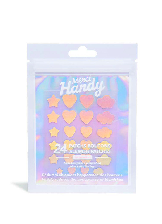On ne va pas se mentir, adolescence et acné font bon ménage. Alors pour faire passer la pilule en douceur et avec une bonne dose d’humour, les teenagers ont pris l’habitude de recouvrir leurs boutons de patchs permettant de les assumer et de les soigner avec panache. On adore ces modèles holographiques Merci Handy en forme d’étoiles, de cœur ou de nuage.