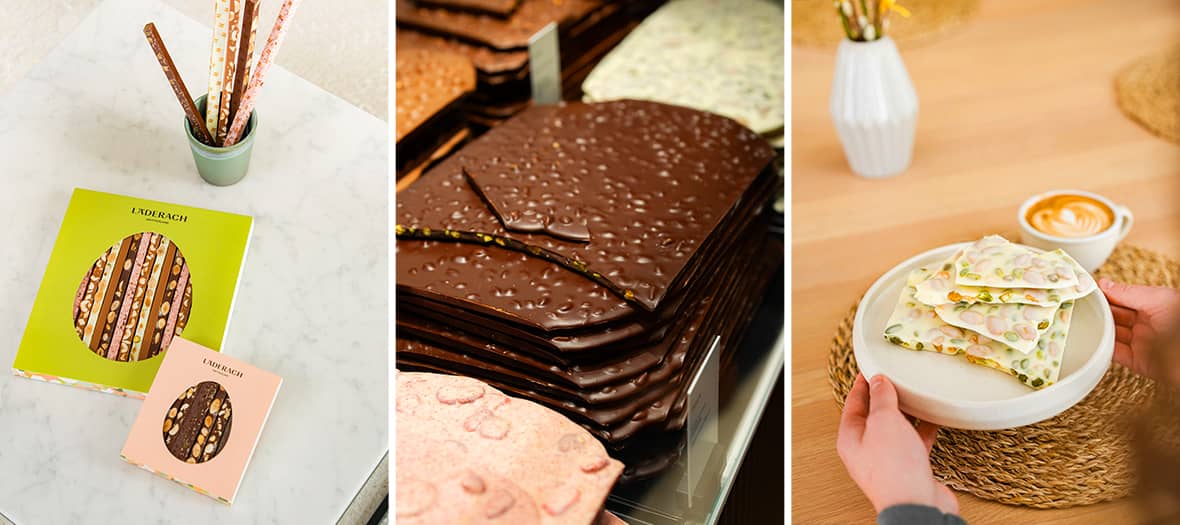 Läderach, 132 rue de Rivoli, Paris 1er (tous les jours de 10h à 20h, le dimanche de 11h à 19h) ; 45 avenue de l'Opéra, Paris 2e (tous les jours de 10h à 19h30, le dimanche de 11h à 19h)